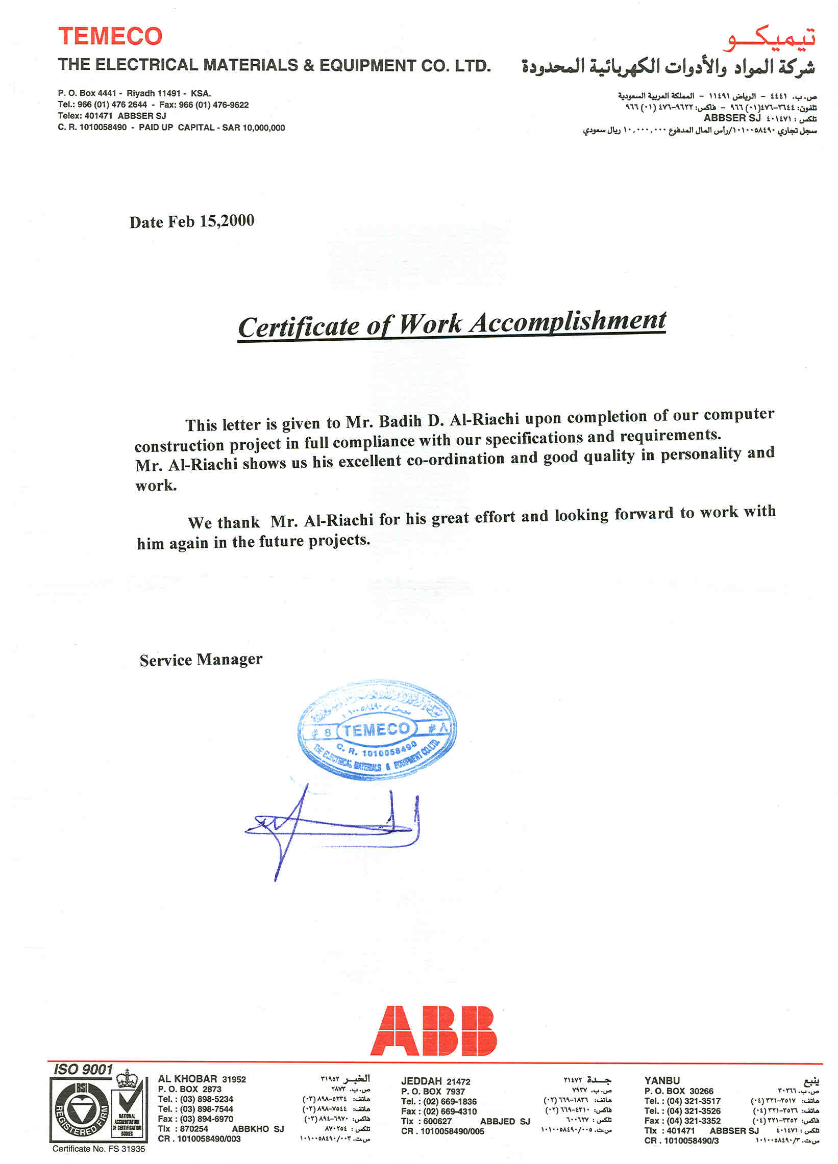 Certificates